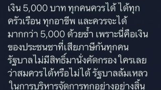 ผมขอพูดแทนประชาชนหลายล้านคน! เงิน 5000 บาท "ควรได้ทุกครัวเรือน ทุกอาชีพ"