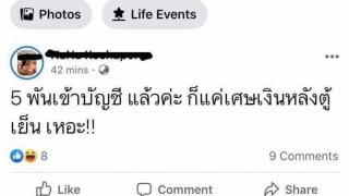 สาวโพสต์เย้ย เงิน 5 พันเข้าบัญชีแล้วค่ะ แต่ก็แค่เศษเงินหลังตู้เย็น