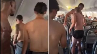 นักฟุตบอลลีกเอิง ของฝรั่งเศส เตรียมเดินทางไปแข่งที่เบลเยี่ยม แต่เพราะอากาศบนเครื่องบินร้อน ก็แก้ผ้ามันซะเลย!!!