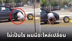 ชาวบ้านงง หนุ่มว่ายน้ำข้ามคลองนอนใต้รถเก๋ง