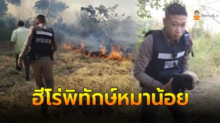 ชาวเน็ตแห่ชื่นชม คุณตำรวจฮีโร่ วิ่งหน้าตั้ง ฝ่ากองไฟ ช่วยลูกหมาจร4ชีวิต