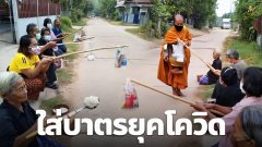ภาพญาติโยมใส่บาตรยุคโควิด ลำบากแท้น้อ ขออนุโมทนาบุญ