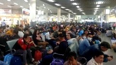 สถานีขนส่งหนาแน่น บางคนต้องนั่งพื้น