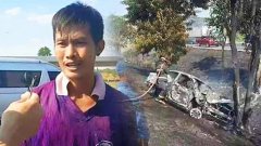 หนุ่มขับรถพ่วงใจเด็ด ใช้น้ำราดตัว ฝ่าเปลวเพลิงเข้าช่วยเหลือคนสลบออกจากเก๋งไฟลุกท่วม