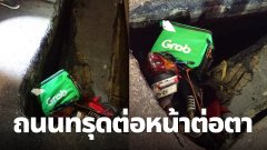 ลุงขับแกร็บ กลับจากส่งของลูกค้า จู่ๆถนนทรุดต่อหน้าต่อตา หลบไม่ทัน ร่วงลงไปทั้งคัน