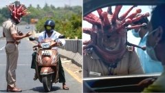 เตือนไม่ฟัง! ตำรวจในอินเดียสวมหมวกไวรัสโคโรนา สร้างความตระหนักให้กักตัวอยู่บ้าน