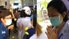 พยาบาลร้องไห้โฮ ชาวบ้านแห่มอบดอกไม้ ให้กำลังใจบุคลากรทางการแพทย์ หลังต้องทำงานเสี่ยงโควิด-19 (ชมคลิป)