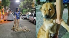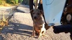 เบรครถแทบไม่ทัน สาวขี่รถไปทำงานลูกหมาขี้เรื้อนวิ่งมาขวางหน้าแถมตื๊อหนัก สุดท้ายได้บ้านอยู่เรียบร้อย