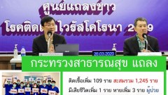 สธ. แถลงเผยผู้ป่วยติด Covid19 รักษาหายกลับบ้าน 3 ราย พบรายใหม่ 109 ราย