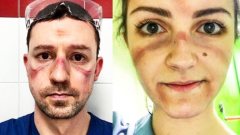 ภาพ หมอและพยาบาลฝั่งยุโรป เผยรอยช้ำบนใบหน้า หลังต่อสู้โควิดอย่างเต็มที่