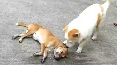 เพื่อนที่ซื่อสัตย์ ช่วงเวลาที่เจ็บปวดใจสุนัขของที่หัวใจสลาย หลังพยายามที่จะปลุกเพื่อนที่ถูกรถชนตายแล้ว (มีคลิป)
