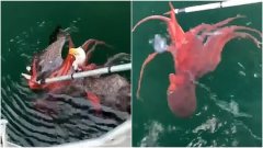 เกือบตายเพราะเหยื่อ นกอินทรีเกือบจมน้ำตายเพราะพยายามกินหมึกยักษ์