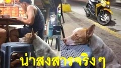 ภาพสุดสะเทือนใจ สุนัขน่าสงสารนั่งรอกินอาหาร งานนี้หิวมากถึงกลับหลับไปเลย