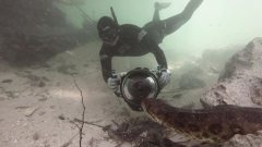 แทบหยุดหัวใจ! ช่างภาพหนุ่มไม่กลัวตายถ่ายเซลฟีกับงูอนาคอนดายักษ์ยาว 6 เมตร ในบราซิล