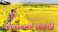 เข้าชมฟรี ทุ่งทานตะวันกว่า 700 ไร่ บานเต็มทุ่ง สวยงามมาก