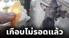 หนุ่มเจอสุนัข ก้มกินขนม ท่าทางแปลกๆ