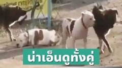 “หมาจรจัด” คิดว่า “ลูกหมาพิทบูล” ถูกทอดทิ้ง แก้เชือกให้ พากันไปเดินเล่น