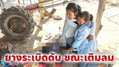 สลด!ยางรถไถ ระเบิดใส่ชาวนา ขณะกำลังเติมลม ดับคาที่