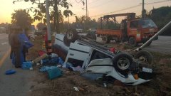 นักแสดงหนุ่มขับรถพาครอบครัวแอ่วเหนือ เกิดหลับในรถชนเสาไฟพลิกคว่ำเจ็บทั้งคัน
