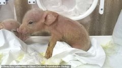 เผยโฉมลูกผสมหมูกับลิงตัวแรกของโลก ซึ่งเป็นส่วนหนึ่งการทดลองปลูกอวัยวะมนุษย์ภายในสัตว์เพื่อการปลูกถ่าย