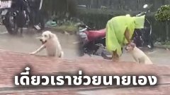 สองนักเรียนแดนใต้ ช่วยตูบขาหลังใช้ไม่ได้ กลางสายฝน