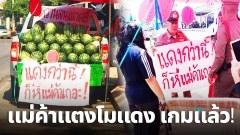เกมแล้ว! แม่ค้าขายแตงโมงานเข้าหลังติดป้ายว่า"แดงกว่านี้ก็..แม่ค้าเถอะ"