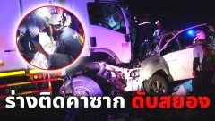 หนุ่มโรงงาน ขับรถกระบะชนประสานงากับรถบรรทุก 6 ล้อ ร่างติดคาซากรถดับสยอง