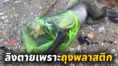 หดหู่ใจ “ลิงเขาสามมุข” คุ้ยขยะกิน แต่หัวดันไปติดถุงพลาสติกที่มนุษย์ทิ้งไว้ เอาออกไม่ได้ จนตกทะเลตาย