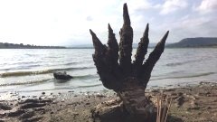ฮือฮา...รูปปั้นพญานาค โผล่กลางอ่างซับประดู่ ชาวบ้านทาแป้งขอเลขเด็ดตามความเชื่อ