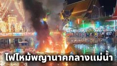 ระทึก! ไฟลุกไหม้เผาพญานาค กลางน้ำ งานลอยกระทง