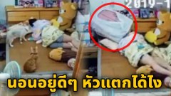 สาวหลับสบายๆ เจอกล่องหล่นใส่หัว