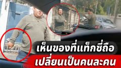 จยย.หัวร้อนจัดปาดหน้าแท็กซี่ ก่อนหยิบหินพร้อมปะทะ