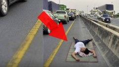 ทางด่วนรถติดหนักหลายชั่วโมง เจอคนนอนเอาเเรงบนไหล่ทาง