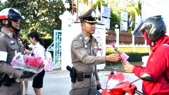 ประทับใจ!! สุโขทัย-ตำรวจ สภ.ศรีสำโรง มอบดอกกุหลาบ 500 ดอกแทนใบสั่ง เนื่องในวันวาเลนไทน์