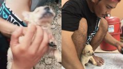 หนุ่มเห็นลูกสุนัขตกน้ำ รีบกระโดดลงไปช่วย คิดว่าคงไม่รอดก่อนจะช่วยปั๊มหัวใจจนน้องฟื้น