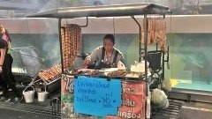 แม่ค้าไส้กรอก ยืนย่างแจกฟรี ให้ จนท.จิตอาสา หน้าเทอร์มินอล 21 โคราช