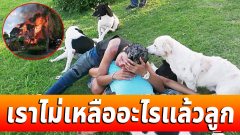 2 แม่ลูกกอดคอน้ำร่ำไห้ พร้อมตูบ 4 ตัว หลังไฟไหม้บ้านวอด เผาลูกหมาตัวเล็กตาย