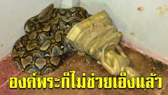 พระสงฆ์ สงสัย สัตว์เลี้ยงหายไปจากวัดประจำ ก่อนเจอตัวต้นเหตุ นอนพุงป่องหลบหลังพระพุทธรูป