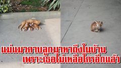 แม่แมวคาบลูกเอามาวางไว้ที่หน้าบ้าน เหมือนอยากจะฝากชีวิตตัวน้อยๆให้มนุษย์ช่วยดูแล