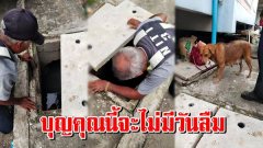 แม่หมาส่งเสียงร้องขอให้ใครสักคนช่วย หลังลูกของเธอตกลงไปในท่อน้ำเสียช่วยเหลือตัวเองไม่ได้