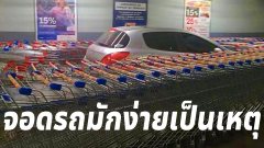 หนุ่มขับรถมาจอดขวางตรงกลางช่องทางเดินเข้าห้าง