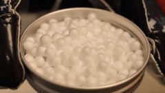 ชายคนหนึ่งนำเม็ดขาวๆกลมๆ มาโชว์ แต่ใครจะไปเชื่อ กินเม็ดเดียวอิ่มได้ทั้งวัน