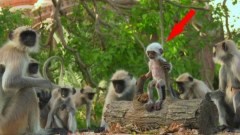 น่าเอ็นดู!! ฝูงค่างเทาออกมาต้อนรับลูกค่างปลอม คิดว่ามันตายแล้ว ร่วมไว้อาลัยปลอบโยนกันเป็นแถว