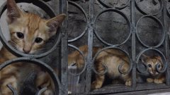 เหล่าลูกแมวนับสิบกำลังเดือดร้อน หลังเขาสั่งไม่ให้อาหารจะหนีออกมาก็ทำไม่ได้เพราะติดรั้วเหล็ก