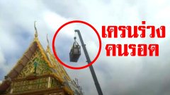 นาทีระทึก เครนหลุดกระเช้าร่วงกระแทก แต่รอดราวปาฏิหาริย์เพราะสิ่งศักดิ์สิทธิ์ในพระอุโบสถ (คลิป)