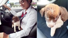 ลูกหมาวิ่งหนีหมาโตหลบข้างล้อรถสาว เธอจึงอุ้มขึ้นรถและวางบนตักโดยไม่กลัวเลอะ แถมยังหาบ้านให้อยู่ด้วย