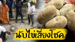 ให้มาแล้ว 2 งวดติด ชาวบ้านนับพันแห่ขอโชค ต้นสะเดาทอง ชูให้เห็นชัดมีเลข 9