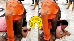 หรือเป็นลางไม่ดี!! หญิงลอดใต้ท้องรูปปั้นช้าง สะเดาะเคราะห์ เพื่อความเป็นสิริมงคล