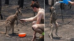 ภาพถ่ายที่แสนเจ็บปวด เมื่อจิงโจ้เดินไปหาวัยรุ่นหนุ่มเพื่อขอความช่วยเหลือหลังจากหนีไฟไหม้ในป่าที่อันตราย
