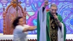 บาทหลวงคาทอลิกผู้ต่อต้านเกย์ถูกผลักตกเวที ขณะกำลังเทศนา